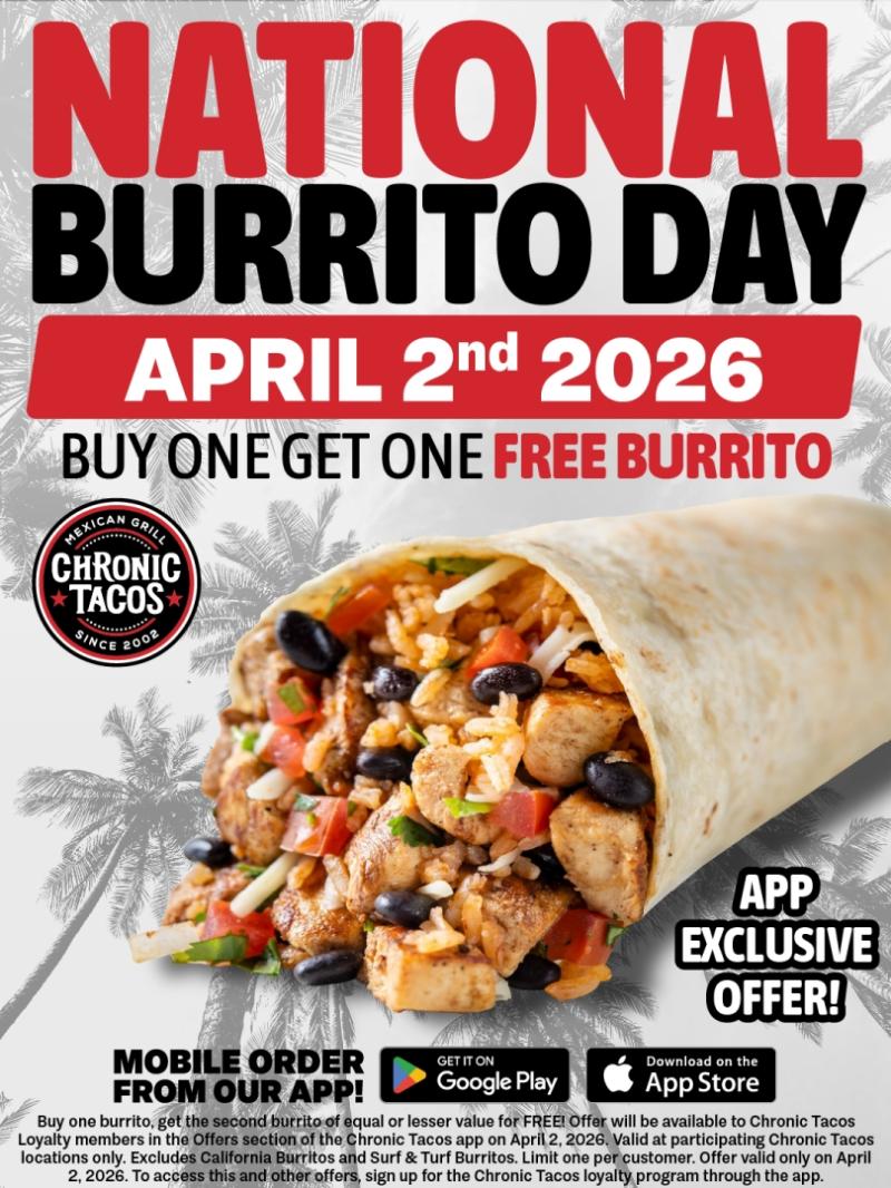 Aliso Viejo, CA - March 13, 2026 - Chronic Tacos is celebrating one of the most delicious food holidays of the year with a special one-day promotion. In honor of National Burrito Day on April 2, 2026, Chronic Tacos will offer loyalty members a Buy One, Get One Free burrito available exclusively through the…