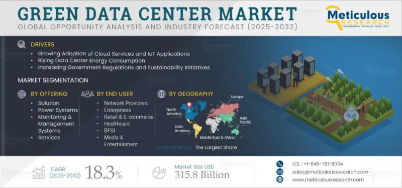 The green data center market is growing rapidly as companies look for ways to manage rising data demands without increasing their environmental impact. In 2025, the market was valued at $83.6 billion and is expected to reach $315.8 billion by 2032, growing at a CAGR of 18.3%. This growth reflects a broader shift toward sustainable infrastructure, as organizations try to balance performance, cost, and environmental responsibility.