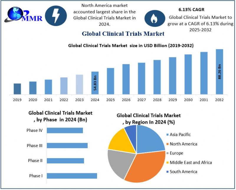 According to a new report by Maximize Market Research, the global Clinical Trials Market was valued at USD 54.83 billion in 2024 and is projected to reach USD 88.26 billion by 2032, growing at a CAGR of 6.13%. A major surge in biopharmaceutical R&D and oncology-focused studies is driving the global clinical trials market toward nearly USD 88.26 billion by 2032 at a 6.13% CAGR.