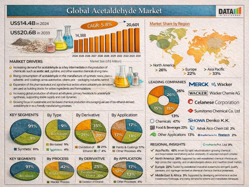 Acetaldehyde Market to Reach US$ 20.6 Billion by 2033 at 5.8% CAGR; Asia-Pacific …