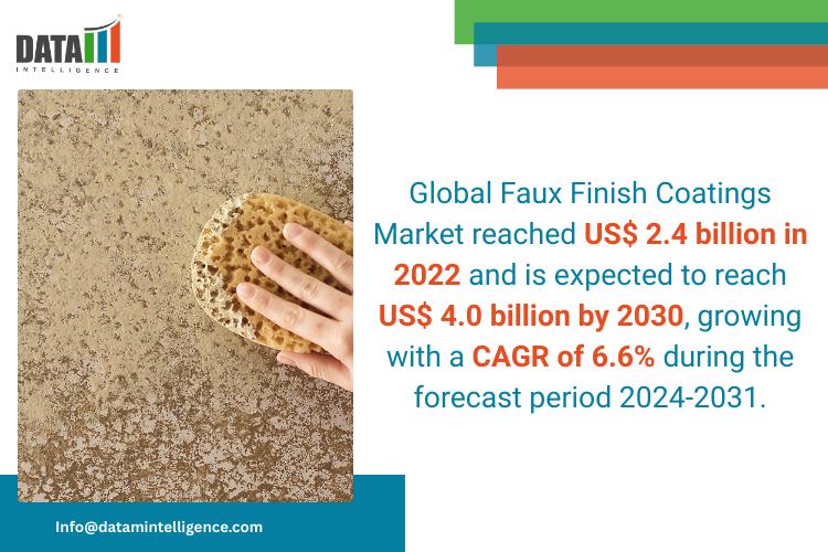 Global Faux Finish Coatings Market reached US$ 2.4 billion in 2022 and is expected to reach US$ 4.0 billion by 2030, growing with a CAGR of 6.6% during the forecast period 2024-2031.