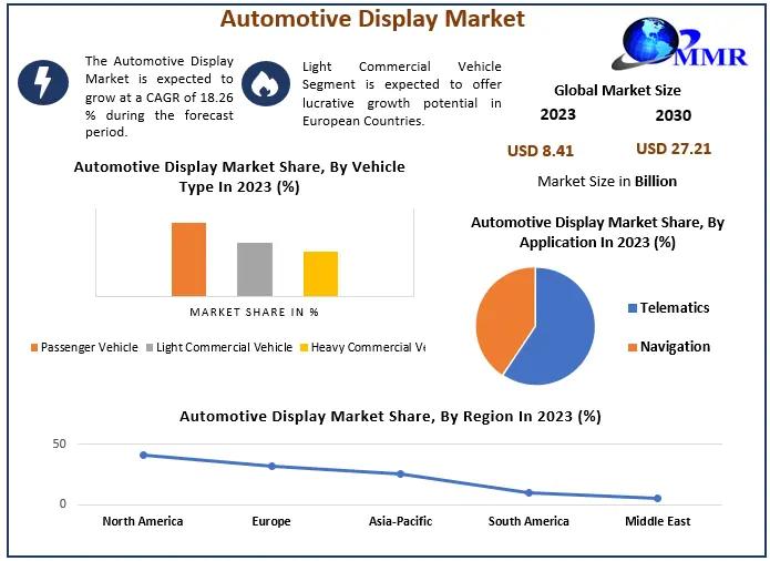 The ๐๐ฎ๐ญ๐จ๐ฆ๐จ๐ญ๐ข๐ฏ๐ ๐๐ข๐ฌ๐ฉ๐ฅ๐๐ฒ ๐๐๐ซ๐ค๐๐ญ size was valued at USD 8.41 Billion in 2023 and the total Automotive Display revenue is expected to grow at a CAGR of 18.26 % from 2024 to 2030, reaching nearly USD 27.21 Billion by 2030.๐๐ฎ๐ญ๐จ๐ฆ๐จ๐ญ๐ข๐ฏ๐ ๐๐ข๐ฌ๐ฉ๐ฅ๐๐ฒ ๐๐๐ซ๐ค๐๐ญ ๐๐ฏ๐๐ซ๐ฏ๐ข๐๐ฐ: