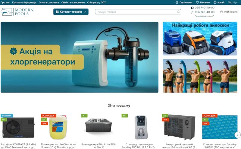 ModernPools, a company specializing in turnkey pool construction and professional pool equipment, has officially launched its new online store - https://store.modern-pools.com.ua/