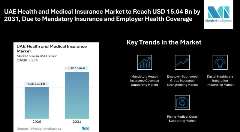 According to Mordor Intelligence, the UAE health and medical insurance market size stands at USD 10.11 billion in 2026 and is forecast to reach USD 15.04 billion by 2031, registering a CAGR of 8.26% during the UAE…