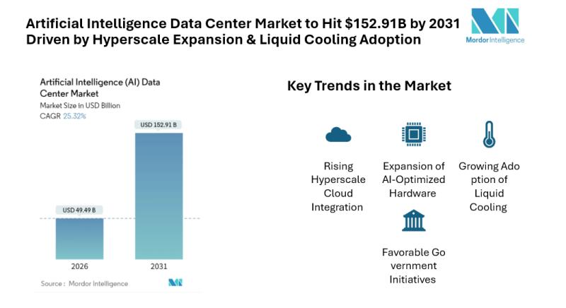 According to Mordor Intelligence, the artificial intelligence data center market size is expected to grow from USD 39.49 billion in 2025 to USD 49.49 billion in 2026 and is forecast to reach USD 152.91 billion by 2031,…