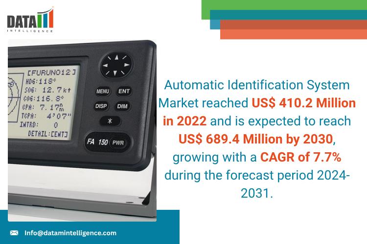 Automatic Identification System Market reached US$ 410.2 Million in 2022 and is expected to reach US$ 689.4 Million by 2030, growing with a CAGR of 7.7% during the forecast period 2024-2031