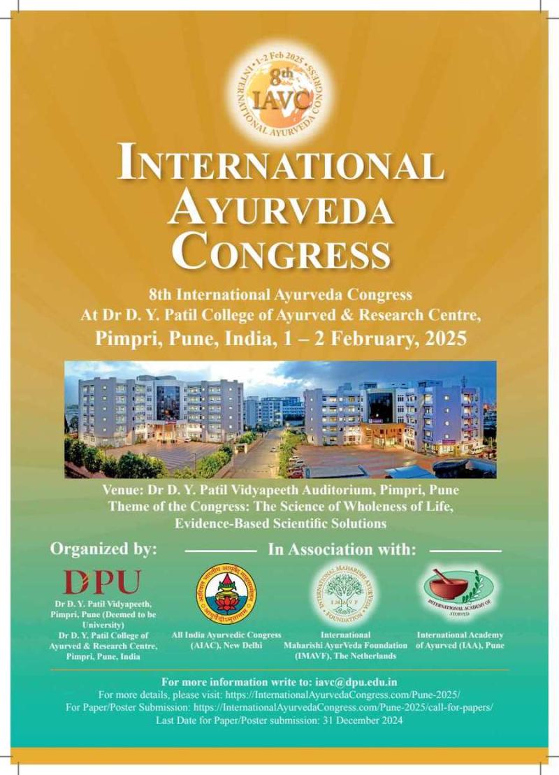 You can edit or delete your press release 8th International Ayurveda Congress, 1-2 February 2025, Pune, India here
