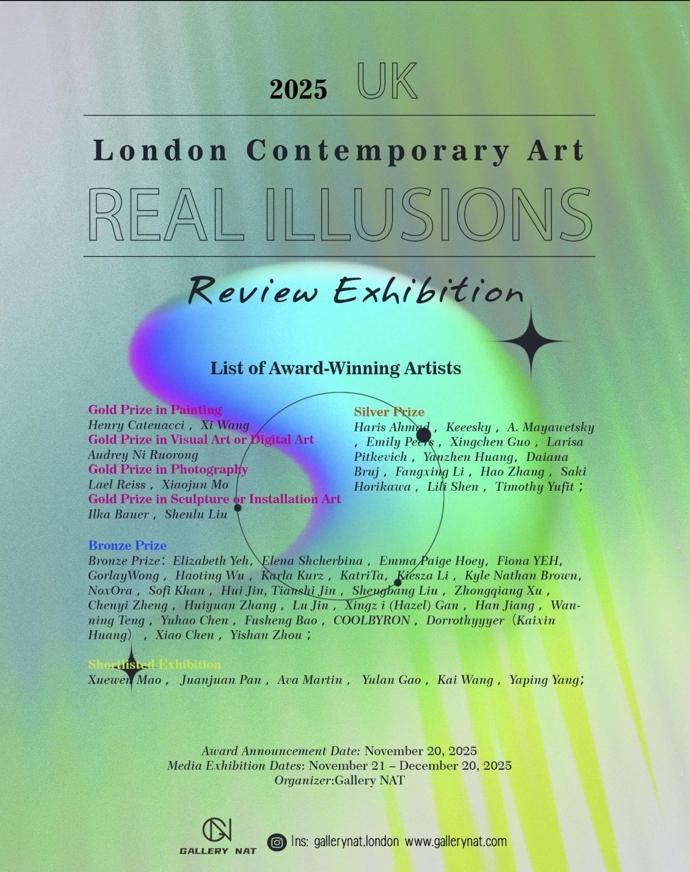 The list of award-winning artists for the British International Art Competition "Real Illusions - 2025 London Contemporary Art Review Exhibition," organized by Gallery NAT London [https://www.gallerynat.com/], was officially released on November 20, 2025. The global media exhibition period will run from November 21 to December 20, 2025. This British international art competition received submissions from artists across dozens of major countries and regions worldwide. After review by Gallery NAT's…