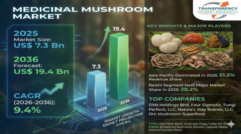 Medicinal Mushrooms Market to Reach USD 19.4 Bn by 2036, Growing at 9.4% CAGR
