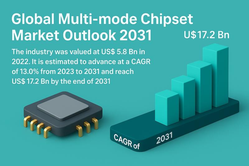 The global multi-mode chipset market was valued at US$ 5.8 Bn in 2022 and is poised for strong expansion over the coming years. According to industry analysis, the market is estimated to advance at a compound annual growth rate (CAGR) of 13.0% from 2023 to 2031, reaching a valuation of US$ 17.2 Bn by the end of 2031. This growth trajectory reflects the accelerating transition toward next-generation wireless communication technologies…