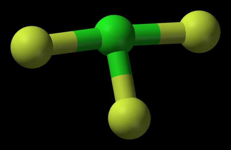 Chlorine trifluoride is an interhalogen compound which is a colorless gas or green liquid with a pungent odor. It acts as an oxidizing and fluorinating agent. It converts many metal oxides to oxygen difluoride or oxygen and metal halides.