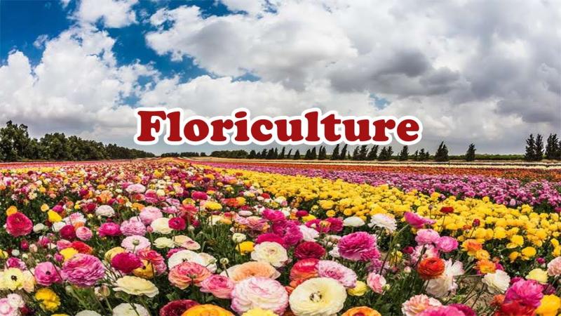 A branch of horticulture focused on the cultivation, management, and sale of flowering plants and ornamental crops. It includes activities like greenhouse production, landscaping, and flower arrangement, contributing to the floral industry and aesthetics.