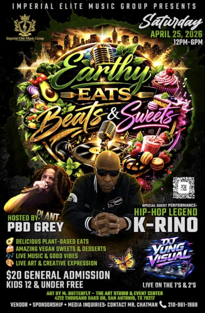 San Antonio, TX - April 6, 2026 - Imperial Elite Music Group LLC proudly presents Earthy Eats, Beats & Sweets, a one-of-a-kind cultural experience blending plant-based cuisine, live music, vegan desserts, and creative expression. The highly anticipated event will take place on Saturday, April 25, 2026, from 12:00 PM to 6:00 PM at Art By M. Butterfly - The Art Studio & Event Center, located at 4212 Thousand Oaks…