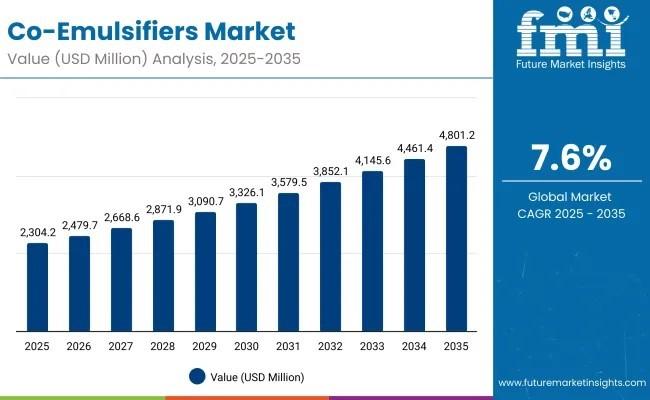 The global Co-Emulsifiers Market is entering a decade of accelerated growth, driven by clean-label reformulation, premiumization in cosmetics, and rapid technological innovation from both established leaders and emerging manufacturers. According to the latest industry analysis, the market is projected to grow from USD 2,304.2 million in 2025 to USD 4,801.2 million by 2035, reflecting an impressive 108% increase and a CAGR of 7.6%. This near 2.1X expansion highlights how co-emulsifiers…