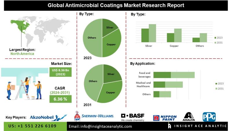 Antimicrobial Coatings Market to reach over USD 13.47 billion by the year 2031- Exclusive Report by InsightAce AnalyticInsightAce Analytic Pvt. Ltd. announces the release of a market assessment report on the "Global Antimicrobial Coatings Market Size, Share & Trends Analysis Report By Type (Silver, Copper And Titanium Dioxide) And End-Use Industry (Medical & Healthcare, Building & Construction, Protective Clothing, HVAC System, And Transportation Automotive)- Market Outlook And Industry Analysis 2031"