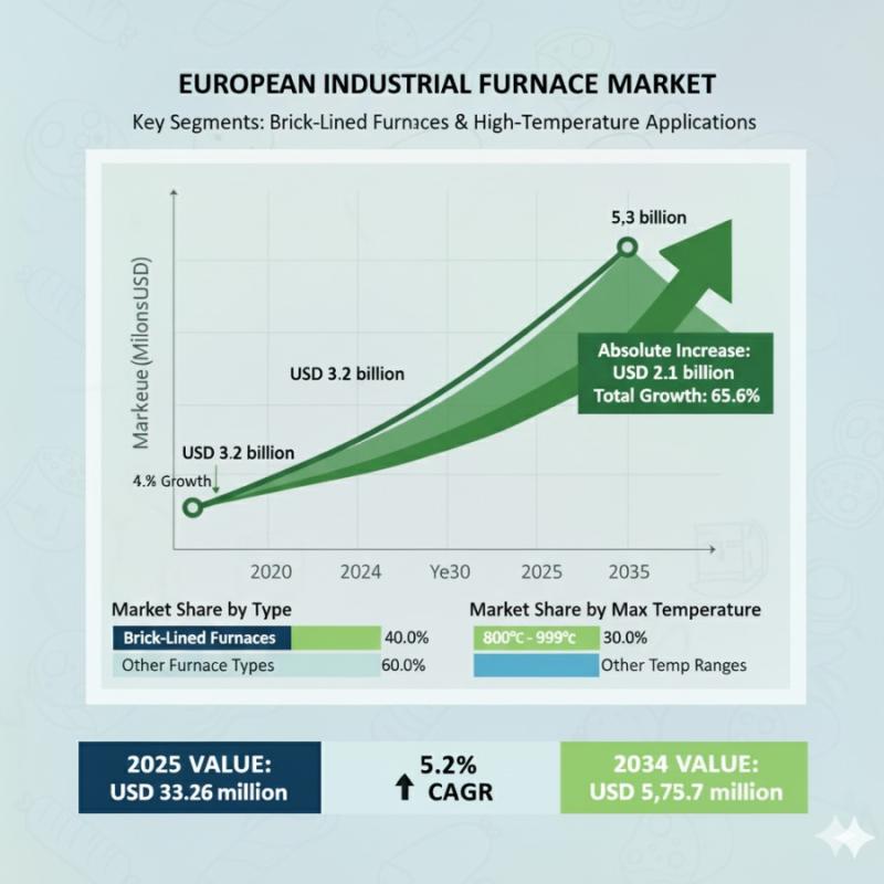 The European industrial furnace market is poised for robust expansion through 2035, fueled by sustainability mandates, energy-efficient innovations, and surging demand from automotive and steel sectors. According to Future Market Insights (FMI), the market is valued at USD 3.2 billion in 2025 and is projected to reach USD 5.3 billion by 2035, expanding at a compound annual growth rate (CAGR) of 5.2%.