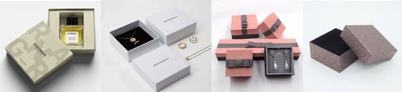 Production of gift boxes and perfume boxes (also called rigid boxes,or luxury packaging) typically uses rigid cardboard wrapped with printed paper, specialty paper, fabric, etc. Common styles include lid-and-base (heaven-earth) box