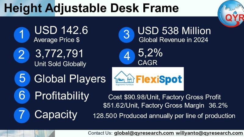Height Adjustable Desk Frame Market to Reach USD 770 Million by 2031 Top 20 Comp …