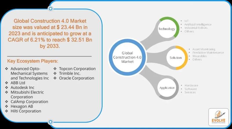 The Construction 4.0 Market is expected to reach a size of US$ 23.44 billion in 2023 and is projected to grow at a CAGR of 6.21% from 2023 to 2033. The market is being driven by rapid advancements in construction technologies, such as automation, robotics, artificial intelligence (AI), Internet of Things (IoT), and building information modeling (BIM). These innovations are enhancing construction processes by improving efficiency, safety, and precision. However, the perception of high initial costs associated with adopting these technologies, along with the lack of a sufficiently skilled workforce, poses challenges to widespread adoption. Despite these challenges, there are significant opportunities for growth in the sector, particularly with the increasing emphasis on sustainability and green building initiatives. The rising demand for eco-friendly and energy-efficient construction solutions is expected to fuel market expansion as companies integrate these principles into their building practices. Furthermore, the ongoing shift toward digitalization and smart construction processes is set to create new avenues for growth and transformation within the market.For More Information: https://evolvebi.com/report/construction-4-0-market-analysis/