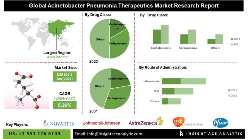 InsightAce Analytic Pvt. Ltd. announces the release of a market assessment report on the "Global Acinetobacter Pneumonia Therapeutics Market Size, Share & Trends Analysis Report By Drug Class (Cephalosporins, Carbapenems, Aminoglycosides, Polymyxins), By Route of Administration (Oral, Intravenous, Others), Region, Market Outlook And Industry Analysis 2031"