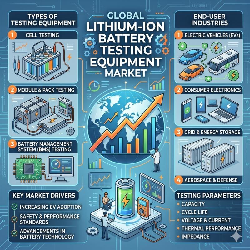 DataM Intelligence has released its latest analysis on the Lithium-Ion Battery Testing Equipment Market, highlighting how electrification trends, grid modernization, energy security priorities and decarbonization targets are reshaping demand for advanced battery validation and diagnostics systems across global markets.