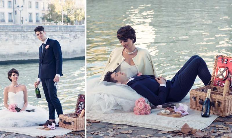 Seine Riverbanks: Ideal for romantic pictures of your wedding picnic after sunset.