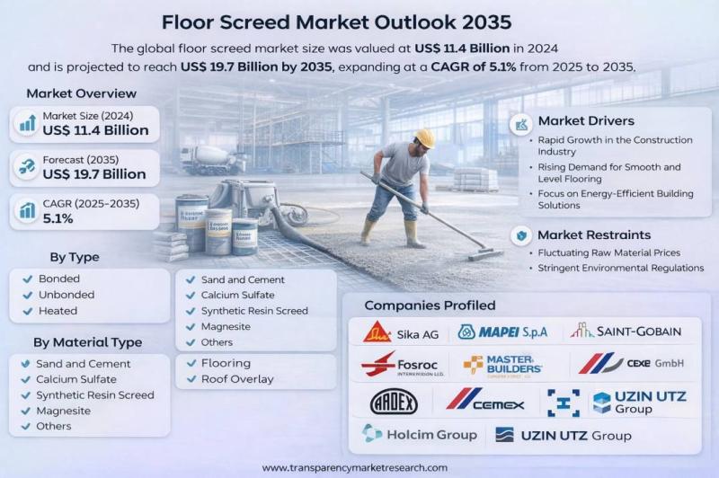 Floor Screed Market to Reach US$ 19.7 Billion by 2035, Driven by Rapid Construction Growth and Adoption of Fast-Track Flooring Solutions | Latest Report TMR