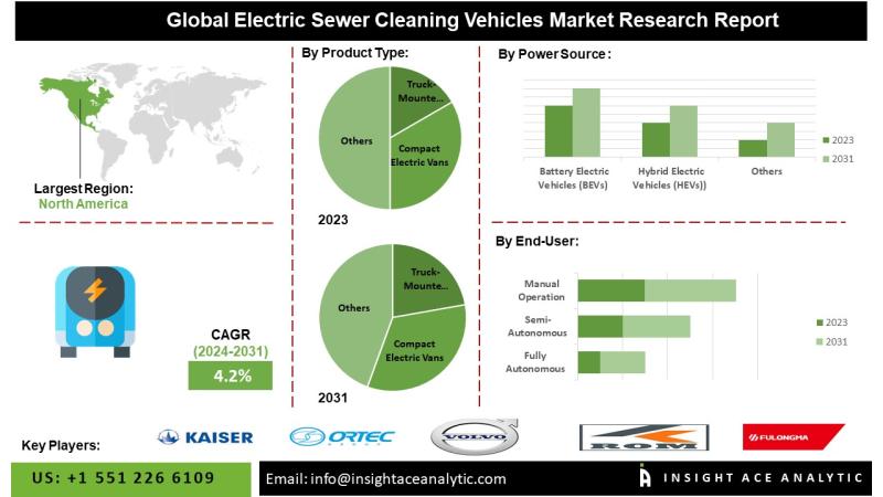 InsightAce Analytic Pvt. Ltd. announces the release of a market assessment report on the "Global Electric Sewer Cleaning Vehicles Market - (By Product Type (Truck-Mounted Vehicles and Compact Electric Vans), By Power Source (Battery Electric Vehicles (BEVs) and Hybrid Electric Vehicles (HEVs)), By Automation Level (Manual Operation, Semi-Autonomous, and Fully Autonomous)), Trends, Industry Competition Analysis, Revenue and Forecast To 2031."