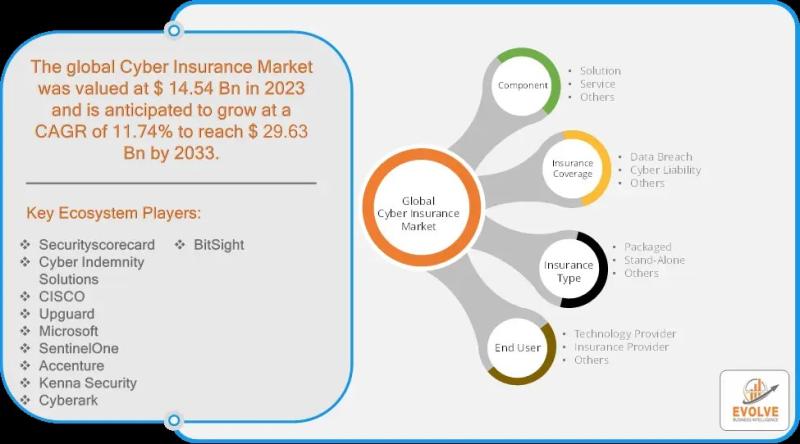 The Cyber Insurance Market is expected to reach a size of US$ 14.54 billion in 2023, with a projected compound annual growth rate (CAGR) of 11.74% from 2023 to 2033. The market is primarily driven by technological advancements as businesses and individuals increasingly recognize the need for cyber risk mitigation in the face of growing digital threats. As cyberattacks become more sophisticated and widespread, the demand for comprehensive cyber insurance policies to safeguard against financial losses due to breaches, ransomware, and other security incidents is escalating. However, the market faces restraining factors such as the perception of high premium costs and the ongoing challenge of evolving cyber threats that make it difficult to accurately assess and price risk. Despite these challenges, significant opportunities exist for growth, particularly through the integration of cyber insurance with cybersecurity services. This offers a more holistic approach to managing and mitigating cyber risks, providing both preventive measures and financial protection. As organizations continue to prioritize digital transformation, the demand for cyber insurance is expected to grow, creating a dynamic and rapidly evolving market landscape.For More Information: https://evolvebi.com/report/cyber-insurance-market-analysis/