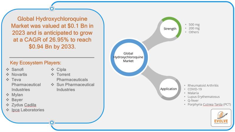 The Hydroxychloroquine Market was valued at US$ 0.1 Billion in 2023 and is projected to grow at a robust CAGR of 26.95% from 2023 to 2033. The market's growth is primarily driven by the increasing demand for treatments related to autoimmune diseases, such as rheumatoid arthritis, lupus, and malaria. Hydroxychloroquine's role in managing these conditions has positioned it as an essential therapeutic option in the healthcare sector. However, the market faces significant restraining factors, including concerns over the drug's efficacy in some conditions and the regulatory scrutiny it faces, particularly following debates regarding its use in COVID-19 treatment. Despite these challenges, there are substantial opportunities for market expansion, driven by ongoing research into new therapeutic applications. Hydroxychloroquine's potential in treating a broader range of diseases, including various viral infections, continues to be explored, which could further boost its market demand. As researchers and healthcare providers explore new ways to leverage the drug, the Hydroxychloroquine market is poised for significant growth in the coming years.For More Information: https://evolvebi.com/report/hydroxychloroquine-market-analysis/