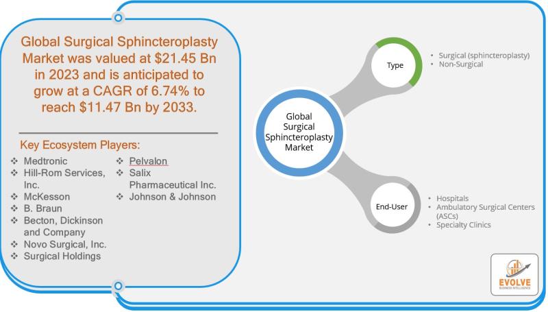 The Surgical Sphincteroplasty Market is projected to reach a market size of US$ 2.14 Billion in 2023, with a robust CAGR of 6.74% expected from 2023 to 2033. The market is primarily driven by the increasing awareness and acceptance of sphincteroplasty procedures, particularly for conditions like anal incontinence and rectal prolapse. As patients and healthcare providers become more informed about the benefits of these surgeries, the demand for sphincteroplasty is rising, especially in developed regions. However, challenges such as the high cost of procedures and limited accessibility, especially in low-income regions, continue to restrain market growth. Technological advancements in surgical techniques, particularly the development of minimally invasive approaches, are opening up significant growth opportunities in the market. These innovations are improving patient outcomes, reducing recovery times, and making the procedure more accessible to a broader patient population. As a result, the surgical sphincteroplasty market is expected to expand further with increasing adoption of these advanced techniques, contributing to overall growth and advancement in patient care.For More Information: https://evolvebi.com/report/surgical-sphincteroplasty-market-analysis/