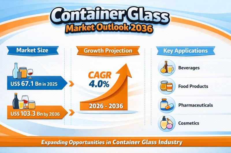 The global container glass market is witnessing steady growth as industries increasingly adopt sustainable packaging solutions. According to recent industry analysis, the market was valued at US$67.1 billion in 2025 and is projected to reach US$103.3 billion by 2036, expanding at a compound annual growth rate (CAGR) of 4.0% from 2026 to 2036.