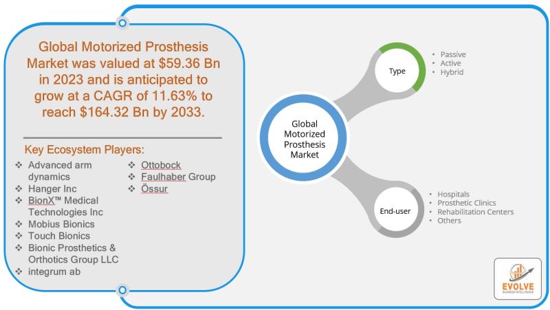 The Motorized Prosthesis Market, valued at US$ 59.36 billion in 2023, is expected to grow at a compound annual growth rate (CAGR) of 11.63% from 2023 to 2033. This growth is largely driven by advancements in technology and materials, which have led to the development of more efficient, functional, and comfortable prosthetic devices. Innovations such as advanced robotics, artificial intelligence, and lightweight, durable materials have significantly improved the performance of motorized prostheses, making them more accessible and reliable for users. However, the market is faced with challenges such as high costs and accessibility, which can limit the adoption of motorized prostheses, particularly in lower-income regions or among individuals with limited healthcare access. The high cost of manufacturing and the specialized nature of motorized prosthetics contribute to their premium pricing, making it difficult for a large portion of the population to afford them. Despite these challenges, significant opportunities exist in the aging population and the increasing rates of amputations globally. As the elderly population grows and the prevalence of conditions such as diabetes and vascular diseases rises, the demand for prosthetic devices, including motorized prostheses, is expected to surge. This demographic shift, coupled with increased awareness of advanced prosthetics, presents substantial growth potential for the market.For More Information: https://evolvebi.com/report/motorized-prosthesis-market-analysis/