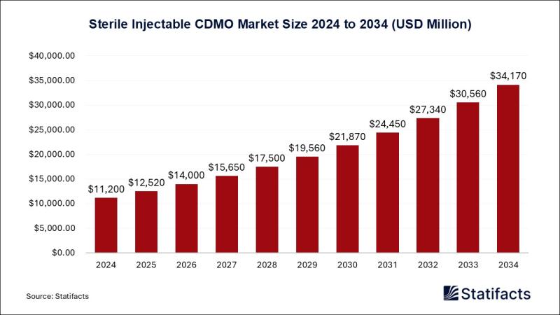 Price- USD 1550, According to Statifacts, The global sterile injectable contract development and manufacturing organization (CDMO) market is poised for significant growth, driven by the increasing demand for injectable drugs, the rise of biologics, and advancements in pharmaceutical technology. With the market size expected to expand from USD 11.2 billion in 2024 to approximately USD 34.17 billion by 2034, growing at a robust compound annual growth rate (CAGR) of 11.8%, this sector presents promising opportunities for key industry players and investors alike.๐๐ข๐๐ฐ ๐๐๐ญ๐๐ข๐ฅ๐๐ ๐๐๐ญ๐๐ฌ๐๐ญ@ https://www.statifacts.com/outlook/sterile-injectable-cdmo-market