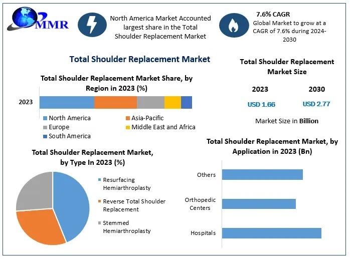 ๐๐จ๐ญ๐๐ฅ ๐๐ก๐จ๐ฎ๐ฅ๐๐๐ซ ๐๐๐ฉ๐ฅ๐๐๐๐ฆ๐๐ง๐ญ ๐๐๐ซ๐ค๐๐ญ ๐๐ฏ๐๐ซ๐ฏ๐ข๐๐ฐThe global total shoulder replacement market was valued at USD 1.66 billion in 2023 and is projected to reach USD 2.77 billion by 2030, growing at a CAGR of 7.6% during the forecast period 2024-2030. The surge in demand for minimally invasive surgeries and the availability of advanced prosthetics are driving market growth. Key players like Zimmer Biomet, Stryker Corporation, and Johnson & Johnson are spearheading innovation in this domain.