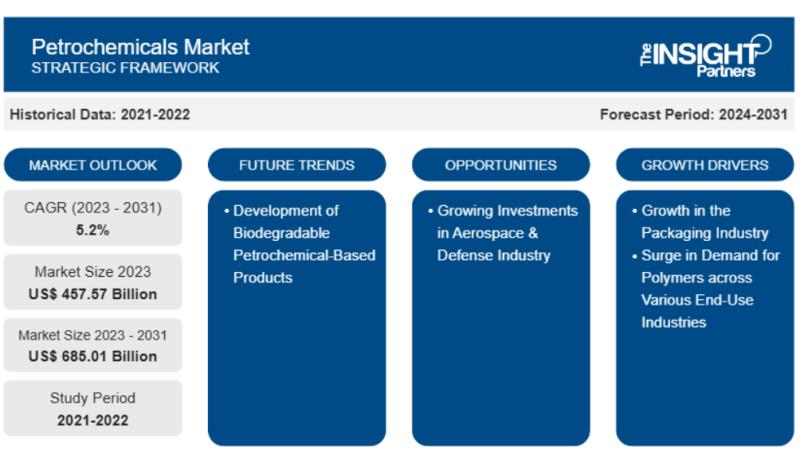 The petrochemicals market is a critical segment of the global chemical industry and involves production and distribution of chemicals derived from petroleum and natural gas. These chemicals are essential in manufacturing a wide range of products, such as packaging materials, polymers, synthetic fibers, industrial chemicals, solvents, and coatings, among others.Get PDF: https://www.theinsightpartners.com/sample/TIPRE00008125/?utm_source=OpenPR&utm_medium=10864