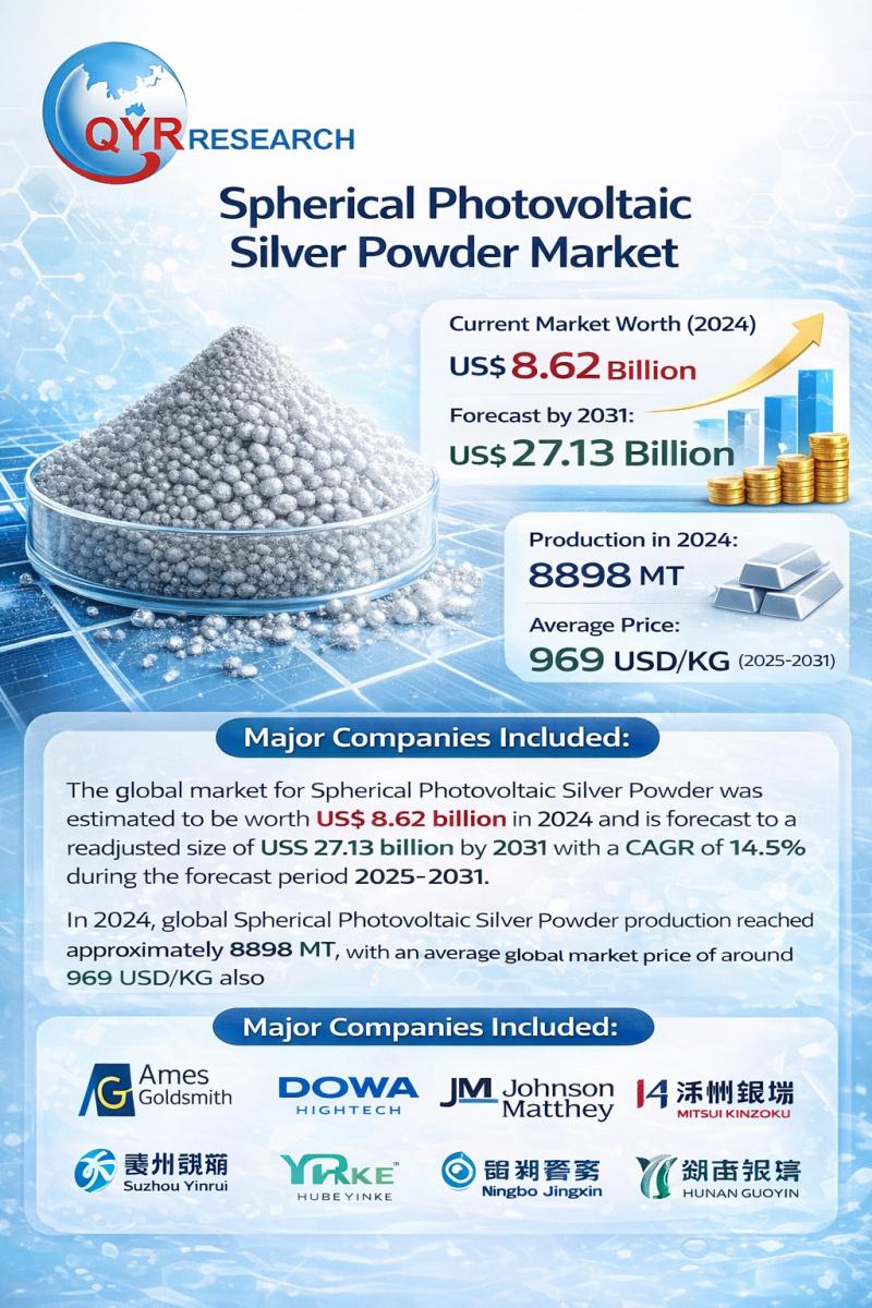 According to QY Research, a new publication titled "Global Spherical Photovoltaic Silver Powder Market Share and Ranking, Overall Sales and Demand Forecast 2025-2031" provides an in-depth, data-driven analysis…
