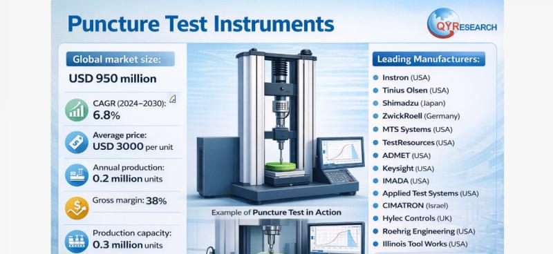 QY Research has released a comprehensive new market report on Puncture Test Instruments, a devices used to measure the resistance of materials to puncture forces. They evaluate how much force is required to pierce or penetrate materials like plastics, films, textiles, paper, leather, rubber, or packaging materials. These instruments are widely used in quality control, research and development, and manufacturing to ensure materials meet mechanical strength and safety standards.