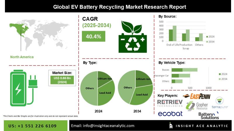 InsightAce Analytic Pvt. Ltd. announces the release of a market assessment report on the "Global Electric Vehicle Battery Recycling Market Size, Share & Trends Analysis Report By Type (Lithium-ion, Lead Acid), By Source (End of life, Production ), By Vehicle Type (passenger cars, buses, vans), Region, Market Outlook And Industry Analysis 2034"