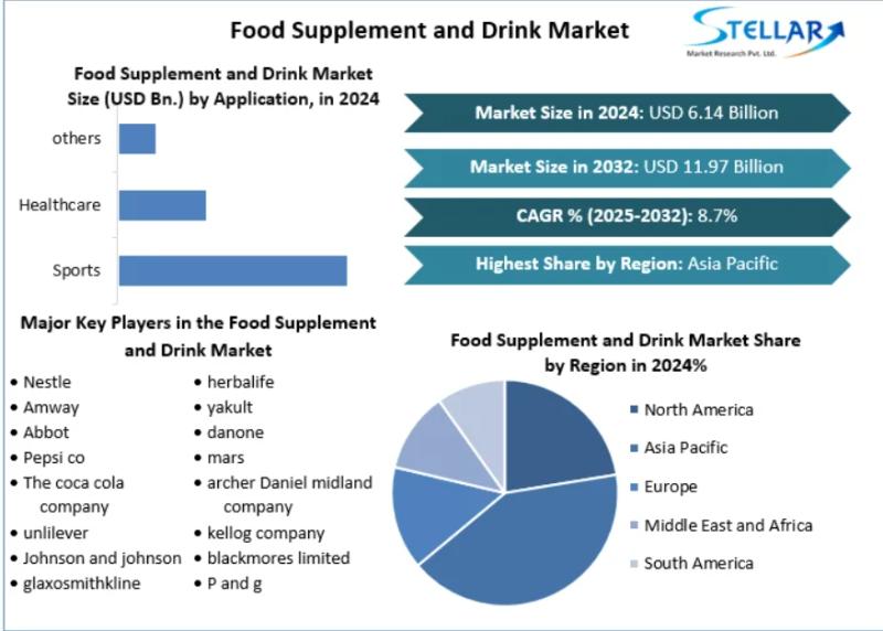 Food Supplement and Drink Market to Reach USD 11.97 Billion by 2032, Growing at a 8.70% CAGR