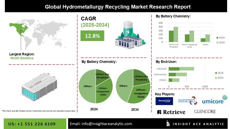 InsightAce Analytic Pvt. Ltd. announces the release of a market assessment report on the "Global Hydrometallurgy Recycling Market Size, Share & Trends Analysis Report By Battery Chemistry (Lithium-nickel Manganese Cobalt, Lithium-iron Phosphate, Lithium-manganese Oxide, Lithium-titanate Oxide, and Lithium-nickel Cobalt Aluminum Oxide), By End-user (Automotive, Industrial, Power, and Marine), Region, Market Outlook And Industry Analysis 2034"