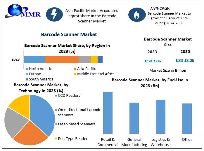 Barcode Scanner Market Set to Achieve USD 13.05 Billion by 2030 with 7.5 Percentage CAGR Growth