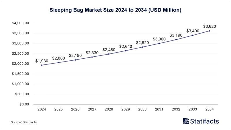 Price- USD 1550, According to Statifacts, The global sleeping bag market has been experiencing steady growth, driven by increasing consumer interest in outdoor recreational activities such as camping, hiking, and adventure tourism. The global sleeping bag market size was valued at USD 1,930 million in 2024 and is projected to surpass USD 3,620 million by 2034, reflecting a compound annual growth rate (CAGR) of 6.5% during the forecast period.๐๐จ๐ง๐ฌ๐ฎ๐ฆ๐ฉ๐ญ๐ข๐จ๐ง ๐๐ง๐๐ฅ๐ฒ๐ฌ๐ข๐ฌ ๐จ๐ ๐ญ๐ก๐ ๐๐ฅ๐๐๐ฉ๐ข๐ง๐ ๐๐๐ ๐๐๐ซ๐ค๐๐ญ