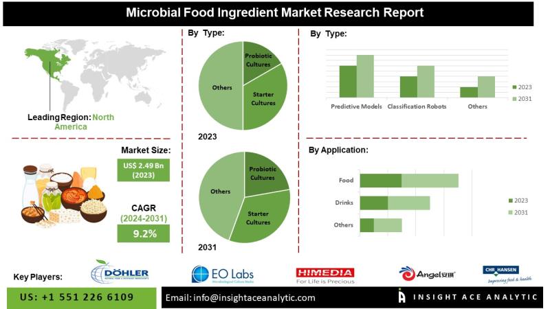 InsightAce Analytic Pvt. Ltd. announces the release of a market assessment report on the "Microbial Food Ingredient Market"- By Microorganism (Bacteria, Yeast, Mold), Product Type (Starter Cultures, Protective Cultures, Probiotic Cultures), Strain (Single-Strain Culture, Multi-Strain Culture, Multi-Strain Mixed Culture) End User (Food and Beverage Manufacturers, Animal Feed Additives), Industry Trends, and Global Forecasts, 2022-2035 And Segment Revenue and Forecast To 2031."