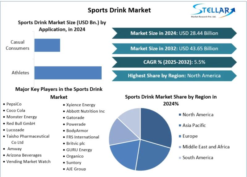 The ๐๐ฉ๐จ๐ซ๐ญ๐ฌ ๐๐ซ๐ข๐ง๐ค ๐๐๐ซ๐ค๐๐ญ was valued at USD 28.44 billion in 2024 and is projected to grow at a CAGR of 5.5% from 2025 to 2032, reaching nearly USD 43.65 billion by 2032. This growth is driven by increasing consumer awareness of health and fitness and the rising demand for beverages that enhance hydration and performance.๐๐ฉ๐จ๐ซ๐ญ๐ฌ ๐๐ซ๐ข๐ง๐ค ๐๐๐ซ๐ค๐๐ญ ๐๐ฏ๐๐ซ๐ฏ๐ข๐๐ฐ: