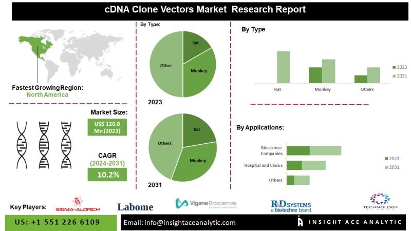 InsightAce Analytic Pvt. Ltd. announces the release of a market assessment report on the "Global cDNA Clone Vectors Market - (By Type (Rat, Cat, Dog, Monkey, Human, Others), By Application (BioScience Companies, Hospital and Clinics, University and Institutions, Others)), Trends, Industry Competition Analysis, Revenue and Forecast To 2031."