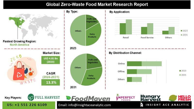 InsightAce Analytic Pvt. Ltd. announces the release of a market assessment report on the " Zero-Waste Food Market - (By Type (Fruits and Vegetables, Dairy Products, Meat and Poultry, Packaged Food, Beverages, Grains and Cereals), By Application (Retail, Food Service, Household), By Distribution Channel (Online, Offline), By Consumer Demographics (Age, Income Level, Lifestyle), By End-user (Individual Consumers, Businesses)), Trends, Industry Competition Analysis, Revenue and Forecast To 2031."