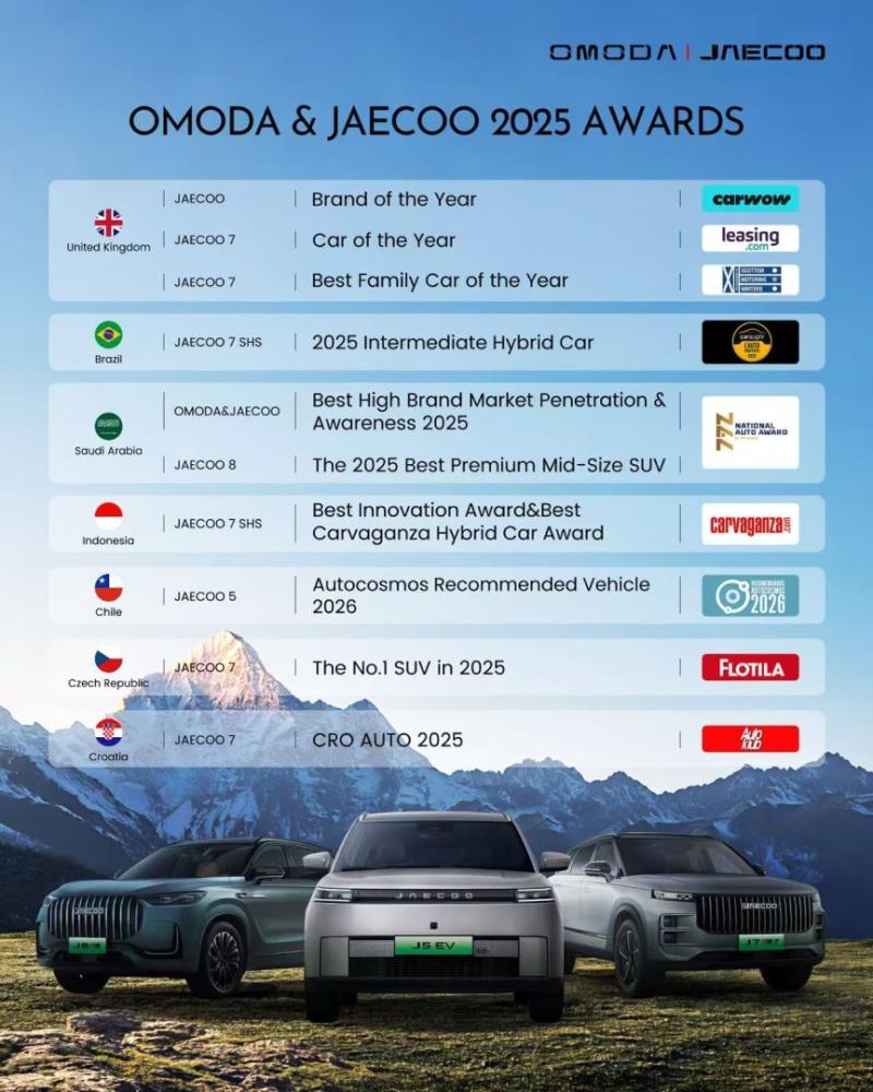 In 2025, OMODA&JAECOO surged across the globe with a sharp and advancing posture. Not only did they continue the legend of being the "fastest-growing globally," but they also achieved a comprehensive leap from rapid expansion to high-quality localization in terms of sales scale, brand influence, and technological products, becoming a dazzling new benchmark in the process of automotive globalization.