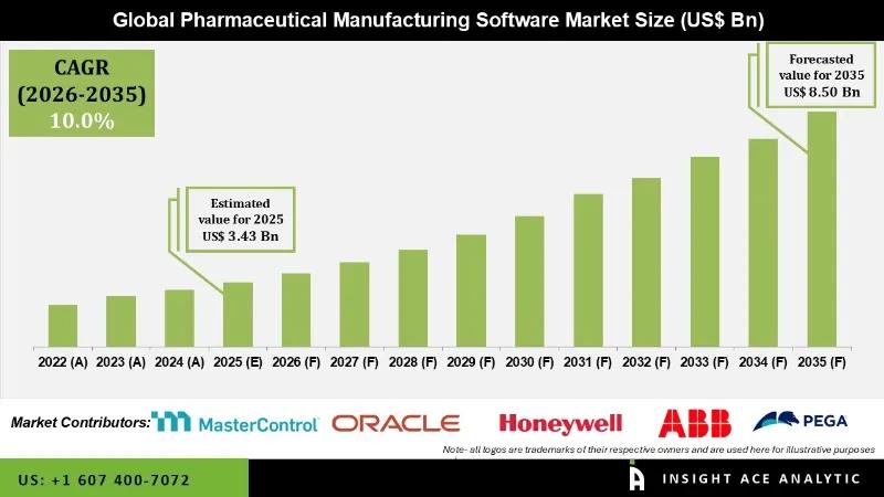 InsightAce Analytic Pvt. Ltd. announces the release of a market assessment report on the "Global Pharmaceutical Manufacturing Software Market Size, Share & Trends Analysis Report By Deployment Type (On-cloud, On-premise), Application (Large Enterprises, Small and Midsize Enterprises), End User (Biopharmaceutical Companies, Medical Device Companies, Contract Research Organizations, Academic Research Institutions, Others)- Market Outlook And Industry Analysis 2034"