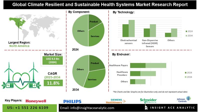 InsightAce Analytic Pvt. Ltd. announces the release of a market assessment report on the "Global Climate Resilient and Sustainable Health Systems Market - (By Component (Product, Services Implementation Services, Training Services, Support & Maintenance Services, Consulting Services, Integration Services), By Technology (Electrochemical sensors, Non-Dispersive Infrared (NDIR) Sensors, Metal Oxide Semiconductor (MOS) Sensors), By End-User (Healthcare Providers, Healthcare Payers)), Trends, Industry Competition Analysis, Revenue and Forecast To 2034."